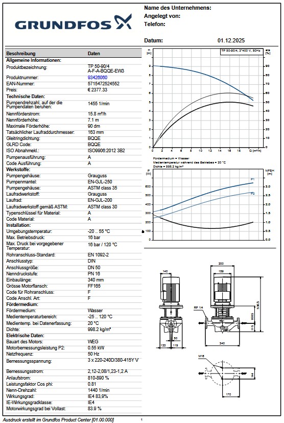 GRUNDFOS TP 50-90/4 A-F-A-BQQE