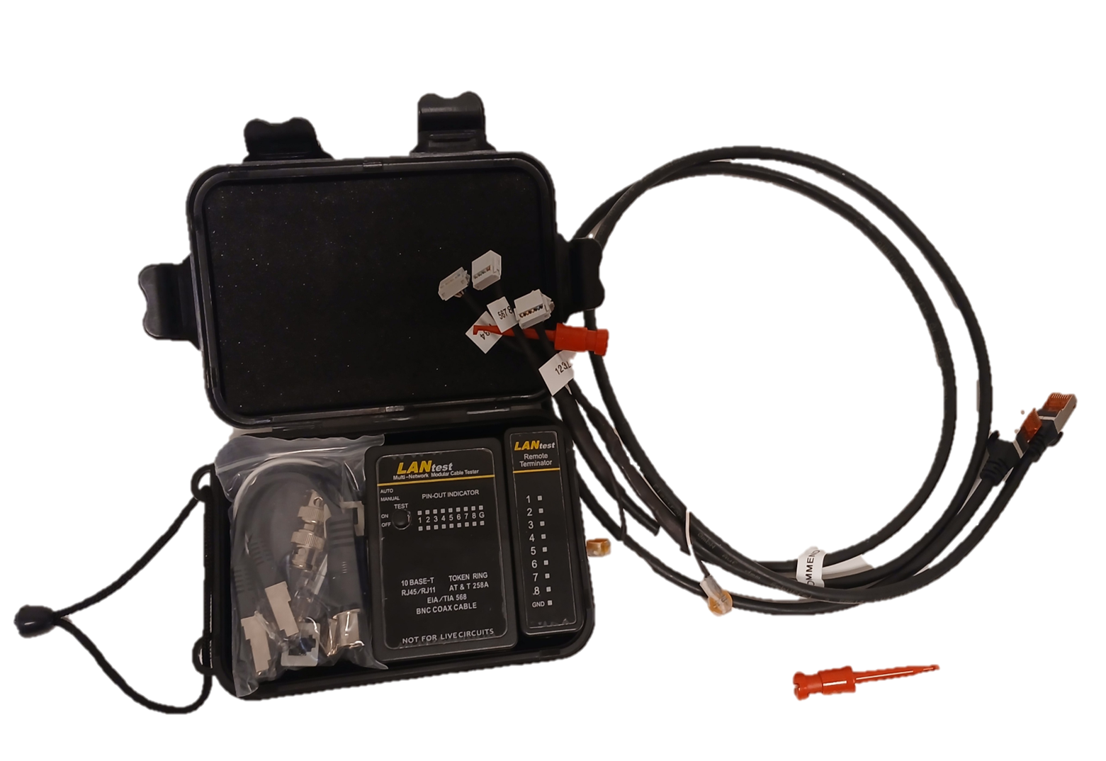 Dieser kostengünstige Kabeltester dient der Kontrolle der richtigen Klemmreihenfolge bei der Datenkabelverlegung.