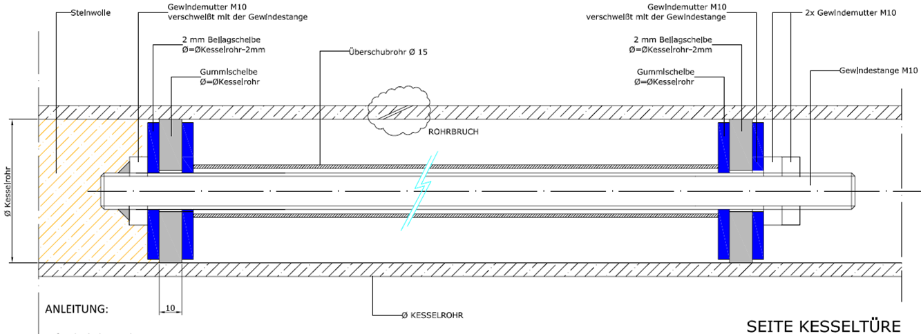 - 1 Gewindestange M 10 mit der Länge Kesselrohr