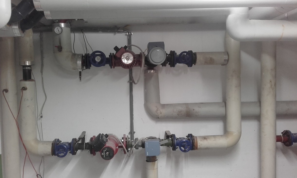 Um dies in allen Lastzuständen (hauptsächlich abhängig von der Außentemperatur) zu gewährleisten wurde einfach der Vorlauftemperaturfühler in die Rücklauftemperaturleitung Einrohrheizkreis gesteckt und die Heizkurve auf eine Rücklauftemperaturheizkurve nach Außentemperatur angepasst.